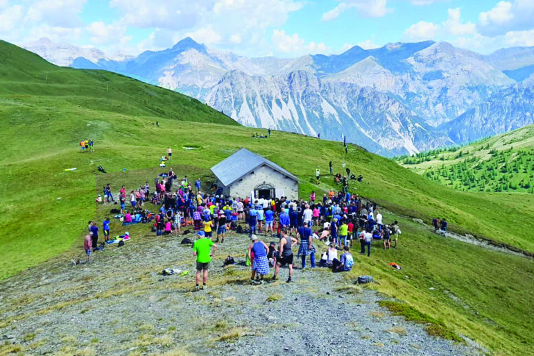 Al termine della santa messa i partecipanti si fermano in quota per il rito della merenda in compagnia.