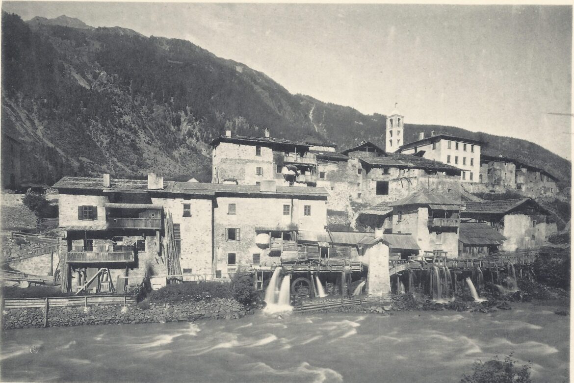 Cepina was home to numerous mills powered by the waters of the Adda River, which ran almost parallel to the various hamlets of the village. In particular, the downstream area of the locality *Bràch* was known for the presence of many of these structures that operated with water channeled through a ditch called *agualar, partly dug into the ground and partly (the terminal section) built with larch wood planks covered in iron (i scosòir). According to a 1844 survey, the conduit measured 315 meters in length, 2.50 meters in width, and 0.60 meters in depth, while the banks were 130 meters long. The water, carried by a wooden beam structure, fell onto the large wheels which, by turning, set various machinery in motion: the press to obtain oil from flax seeds, the hydraulic hammer with the bellows for metalworking (the iron for the artistic gates of the Ossuary was worked here), and the grindstone for sharpening tools. Additionally, the mill’s shaft operated the fulling mill for cloth and the barley huller. In more recent years, there was also a sawmill. The mills in the locality of the same name were three and belonged continuously for centuries to the descendants of the Tyrolean Cristoforo Walzer, who emigrated to Cepina in the second half of the 1700s. In fact, in 1926, Lia Valzer was still listed as the owner of two mills (one operational and one closed), while a third had been sold to the De Gasperi family. That year, the small hamlet was swept away by an avalanche: it detached from Mount Boer and descended right on the hamlet of **Mulìn, causing the formation of a lake whose subsequent flooding completely washed away the mills along with the stored grains, four houses with all their furniture, the power station that supplied the village, the sawmill, and a woodworking machine. The owners quickly re-dug the **agualar* by hand, repaired the buildings, and restored what remained of the equipment that survived the destruction. The sawmill ceased operations around the mid-1950s, while the mills remained operational for another decade; the abandonment of rye cultivation was decisive in determining their fate. At the Valzer house, descendants of the ancient mill owners, some grindstones, and wooden parts that powered the mills are still visible. Part of the equipment has been donated by the owners to the Museo Vallivo di Valfurva, where they are still on display.