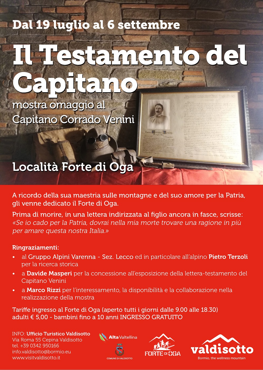 Tariffe ingresso al Forte di Oga (aperto tutti i giorni dalle 9.00 alle 18.30) adulti € 5,00 – bambini fino a 10 anni INGRESSO GRATUITO