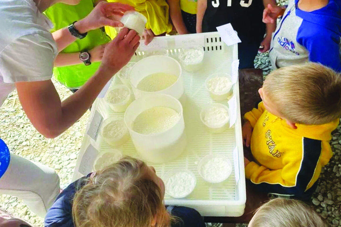 Unisciti a noi per una giornata emozionante presso la nostra azienda agricola, dove i bambini possono avvicinare le mucche, imparare il processo di produzione del latte e aiutare a preparare il formaggio primo sale.